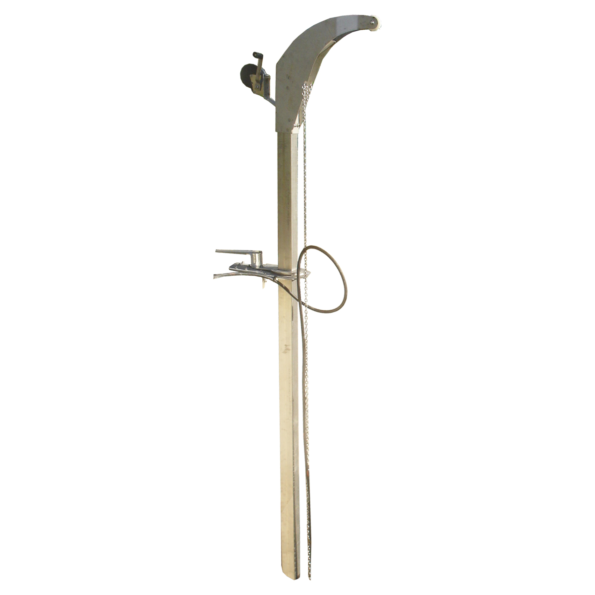 Caractéristiques techniques : • Potence 100% en acier inoxydable • Treuil en acier inoxydable auto-freiné 300 kg • Blocage de la base de rotation en position